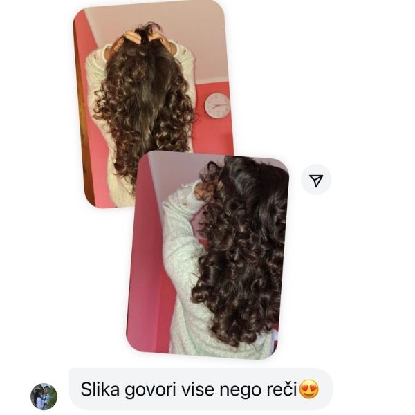 Ne, formula je lagana i ne otežava kosu, već joj daje elastičnost i prirodan volumen.
